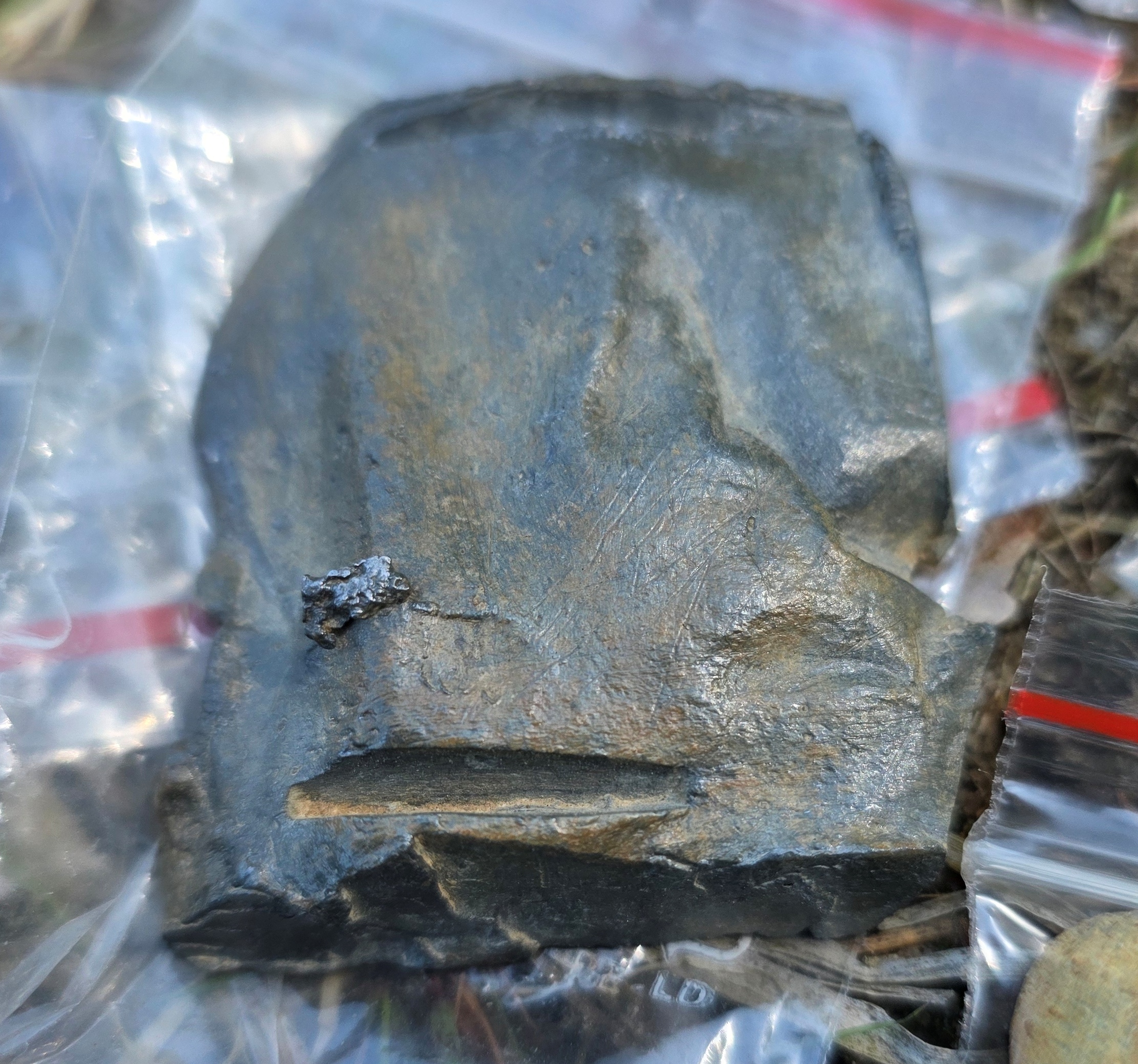 To znalezisko nie zostało zidentyfikowane – jest to jakby rodzaj nabijki, z zachowanym fragmentem materiału: