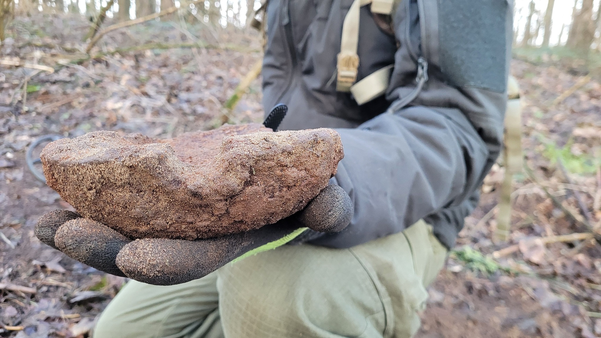Nie da się ukryć, że takie osobiste znaleziska zostają najdłużej w pamięci. Ariel znalazł splot guzików, które nie tylko są otoczone słomą, ale jeszcze mają fragment materiału. Jest to niemal potwierdzenie faktu życia w ziemiankach, o których pisaliśmy powyżej: